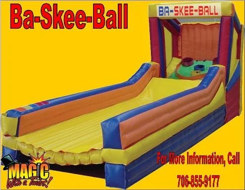 The Ba-Skee-Ball game requires a relatively flat area about 8’ x 18' and within 100' of an electrical outlet. We prefer to set the inflatable up on grass. Please make sure all sticks, rocks and dog waste are cleared from the area before we arrive, to avoid delay in setting up for your event.